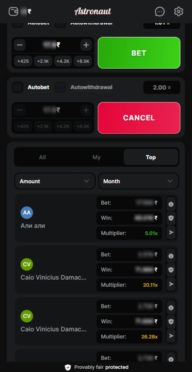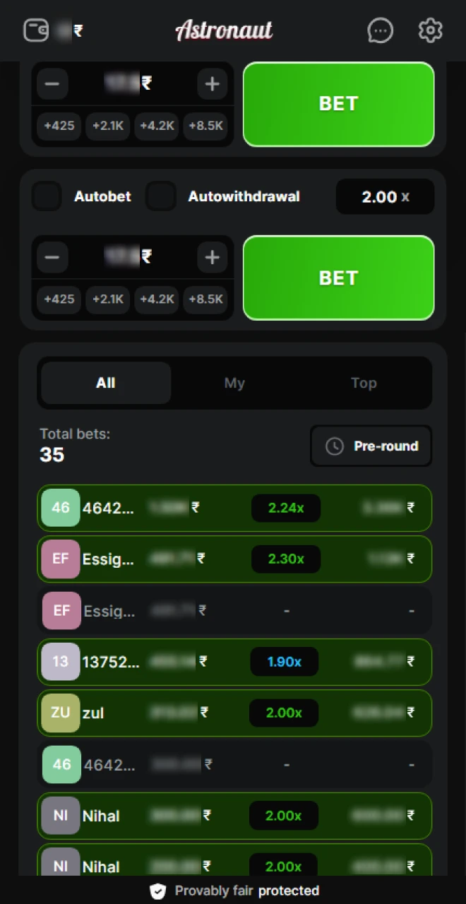 Our team verified that playing Astronaut through licensed apps is safe. The game was made by 100HP Gaming, which operates under a Curaçao license. All casinos that host the Astronaut app use SSL encryption to protect payments and player data. Transactions in INR through UPI, Paytm, or NetBanking remain secure, and withdrawals follow strict checks. The Astronaut crash game also uses Provably Fair technology, so every round can be verified by the player. These measures give Indian users confidence that the app is legitimate and that results are fair.